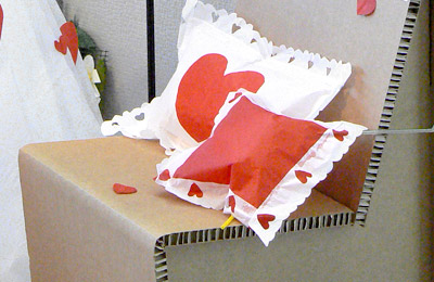 Booth with display elements and furniture in honeycomb cardboard by eccoqua.