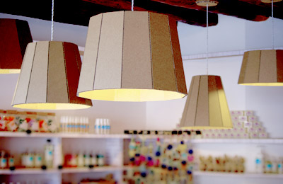 Retail project with cardboard furniture, lights and display elements for personal care products. Located in the centre of Treviso, Saponeria Veneta offers ecological soaps and cosmetics.